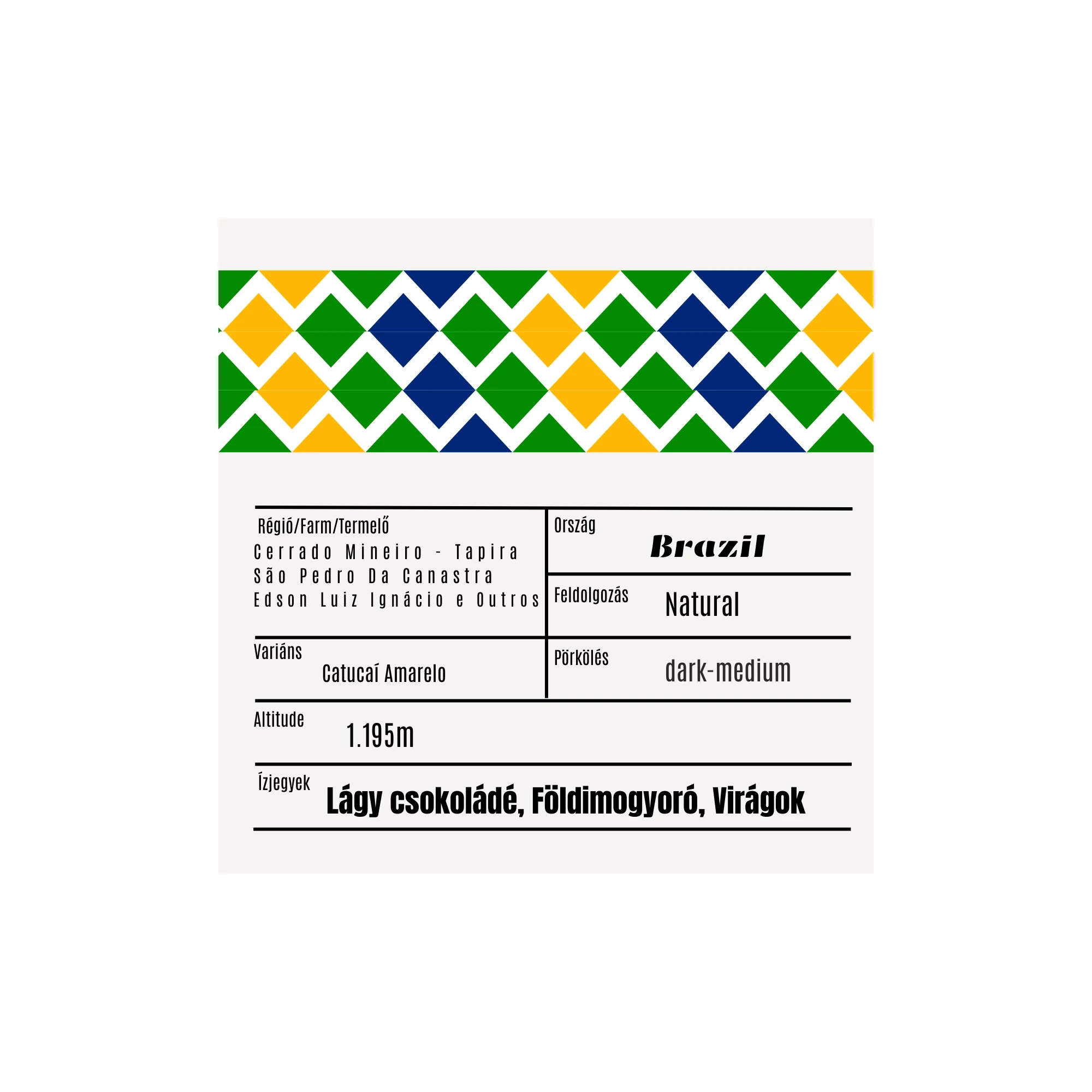 Ez a brazil tétel a Cerrado régióból érkezik, ahol az egyenletes klíma és a 900–1200 méteres magasság ideális feltételeket teremt a kiegyensúlyozott, tiszta ízprofilú kávék számára. A Yellow Catuaí fajta természetes feldolgozással készült, ami tovább erősíti a kávé telt, krémes karakterét.