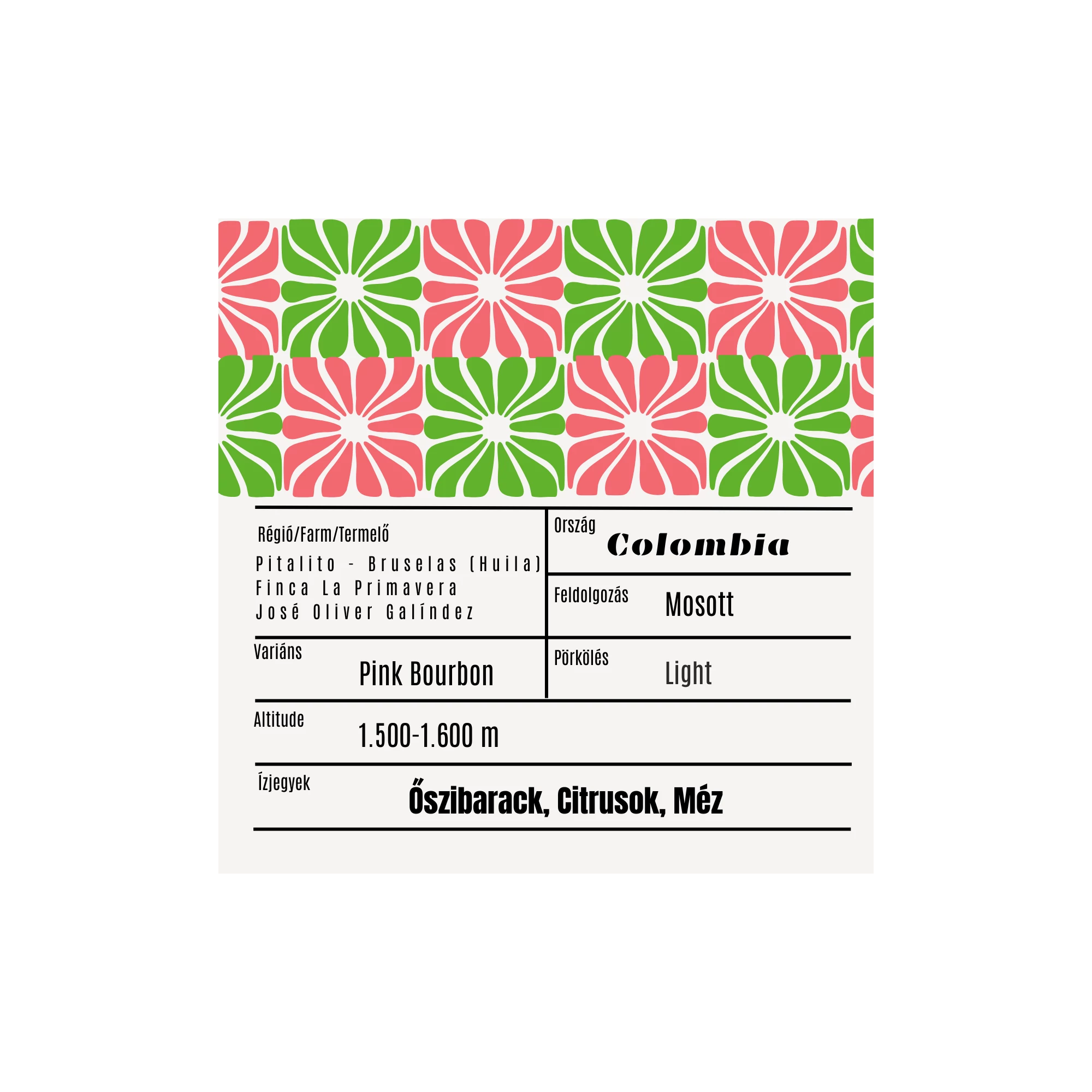 Ismerd meg a Huila régió egyik legizgalmasabb tételét, amely a különleges Pink Bourbon variánsnak köszönheti egyedi karakterét. Ez a kávé a tavasz frissességét és az andoki napsütés melegét ötvözi minden egyes csészében. José Oliver Galíndez gondos kezei közül egy olyan tiszta, elegáns és gyümölcsös tétel került ki, amely a specialty kávék kedvelőinek igazi csemege. A kortyot az őszibarack lédús, bársonyos édessége uralja, amelyet a méz selymes textúrája tesz teljessé. A lecsengésben megjelenik a ciprusok frissítő, enyhén fás és gyógynövényes aromája, amely egy rendkívül tiszta és hosszan tartó utóízt kölcsönöz a kávénak. Ez a mosott Pink Bourbon kiválóan érvényesül filteres eszközökkel (V60, Chemex, AeroPress), ahol a rétegzett ízei tisztán kibontakozhatnak. Ha szereted a világos pörkölésű, gyümölcsös eszpresszót, önmagában, tej nélkül ajánljuk, hogy a barackos jegyek teljes pompájukban érvényesüljenek.