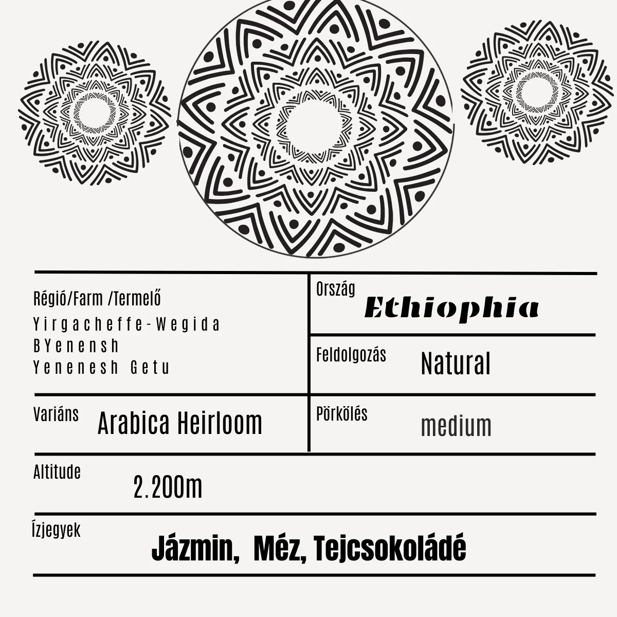 Ez az etióp specialty kávé a híres Yirgacheffe-Wegida régióból származik, a BYenensh farm gondos terméséből, ahol Yenenesh Getu minden apró részletre odafigyel. A 2.200 méteres magasság és a natural feldolgozás biztosítja a gazdag, virágos és komplex ízvilágot, amely a Heirloom arabica fajták sajátossága.